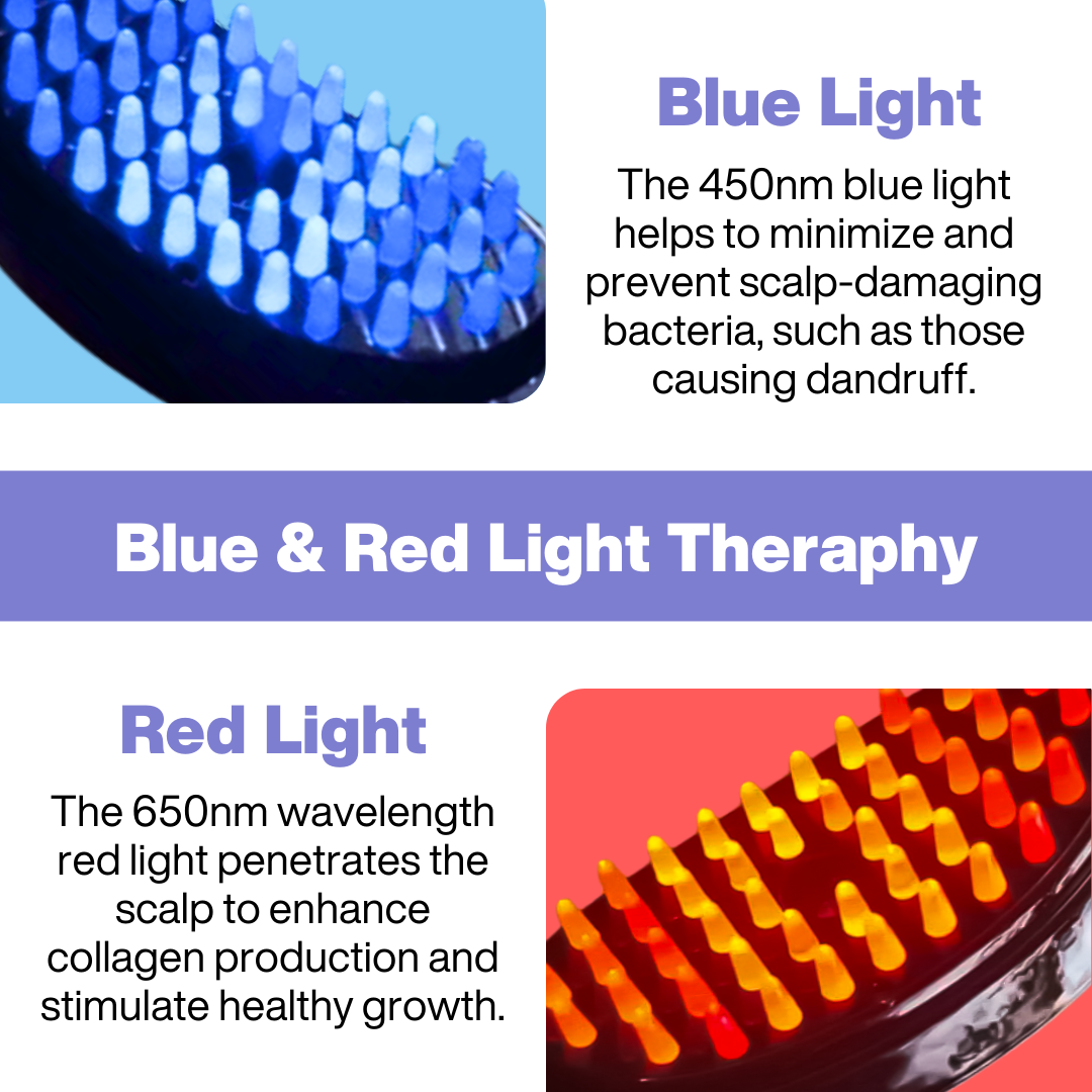 - Red and Blue Light Therapy: Improves scalp health, strengthens roots, and combats thinning and breakage